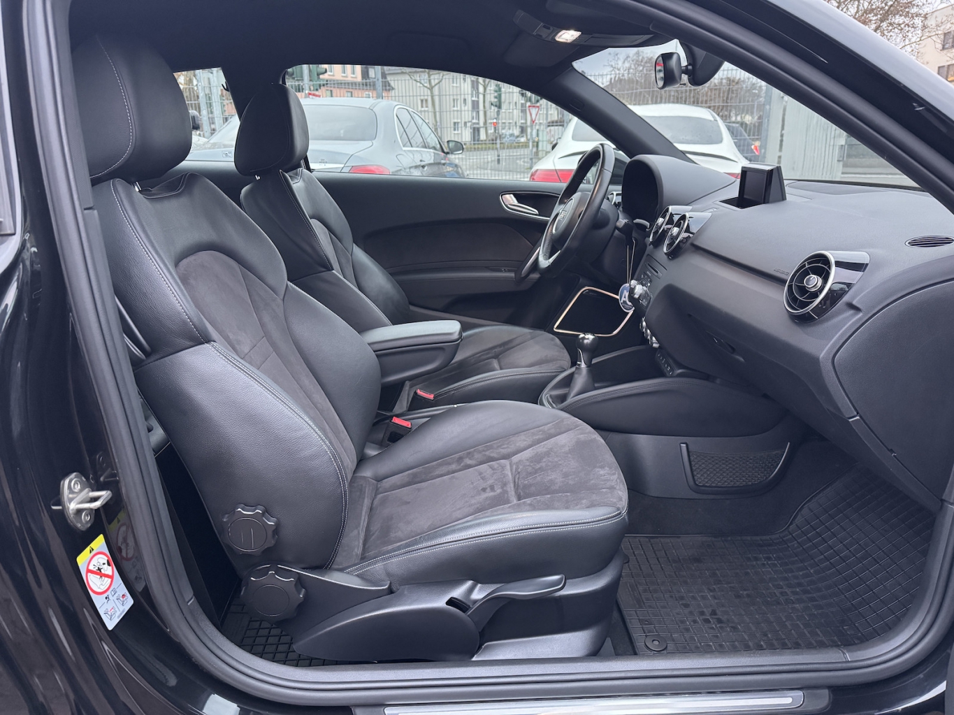 - Sitzbezug / Polsterung: Alcantara/Leder