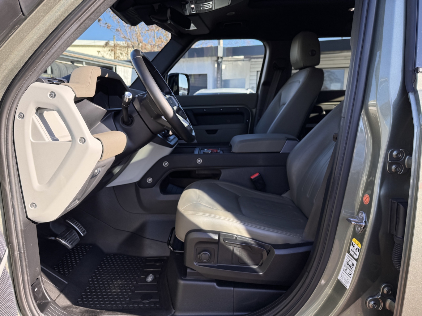 - Sitzbezug / Polsterung: Leder genarbt / Textil-Webstruktur (Khaki)