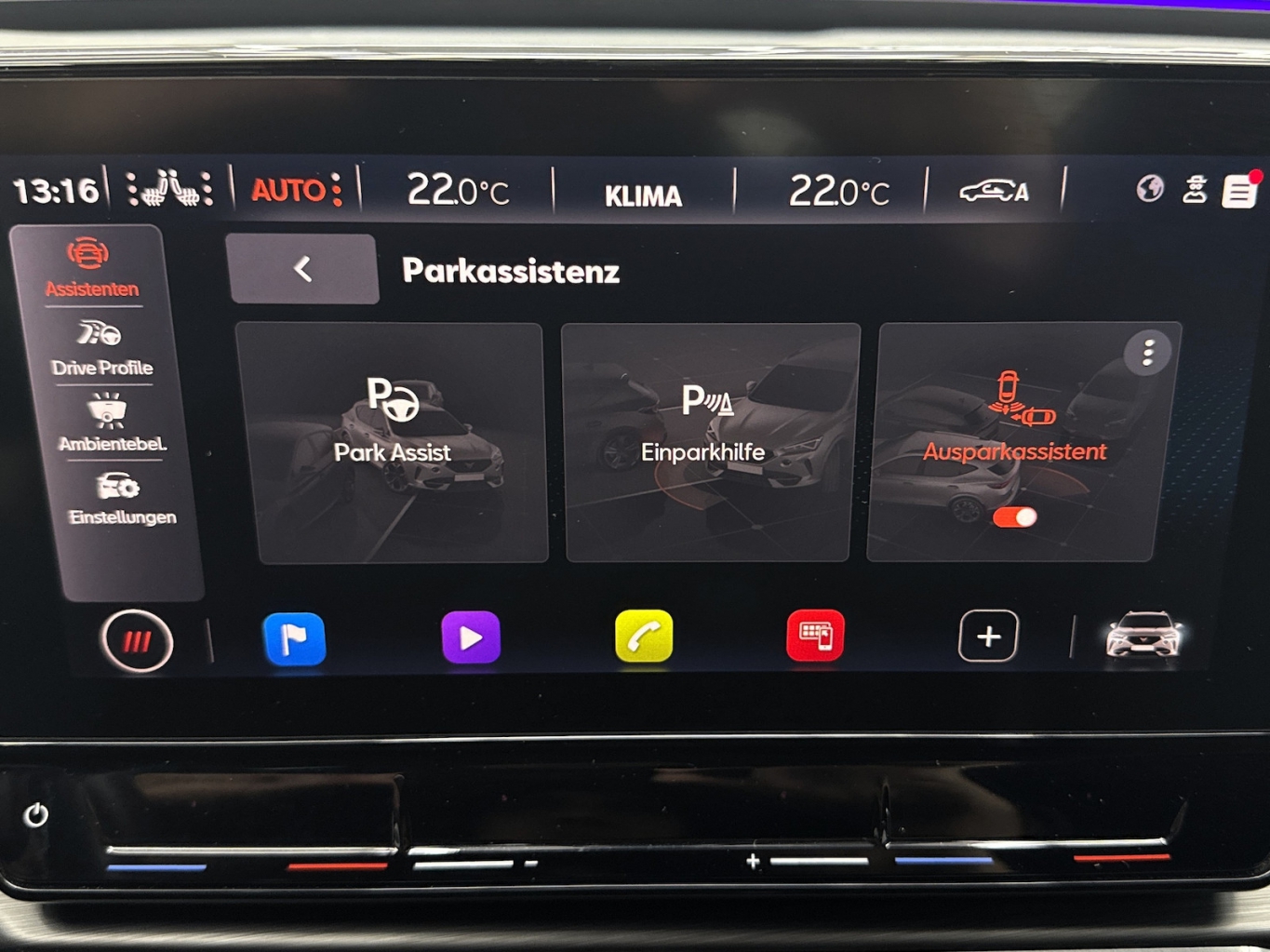 - Aktiver Einpark Assistent selbstlenkend