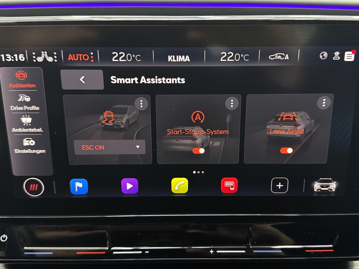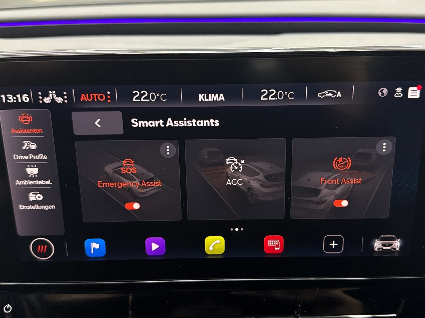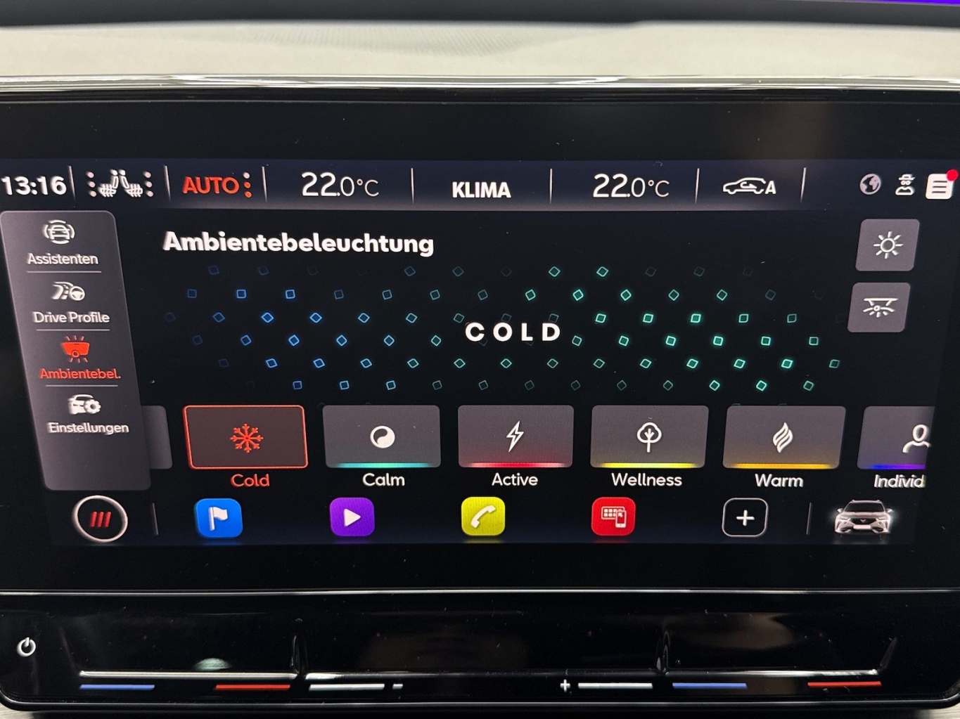 - Ambientbeleuchtung umlaufend mit Anbindung der Assistenten