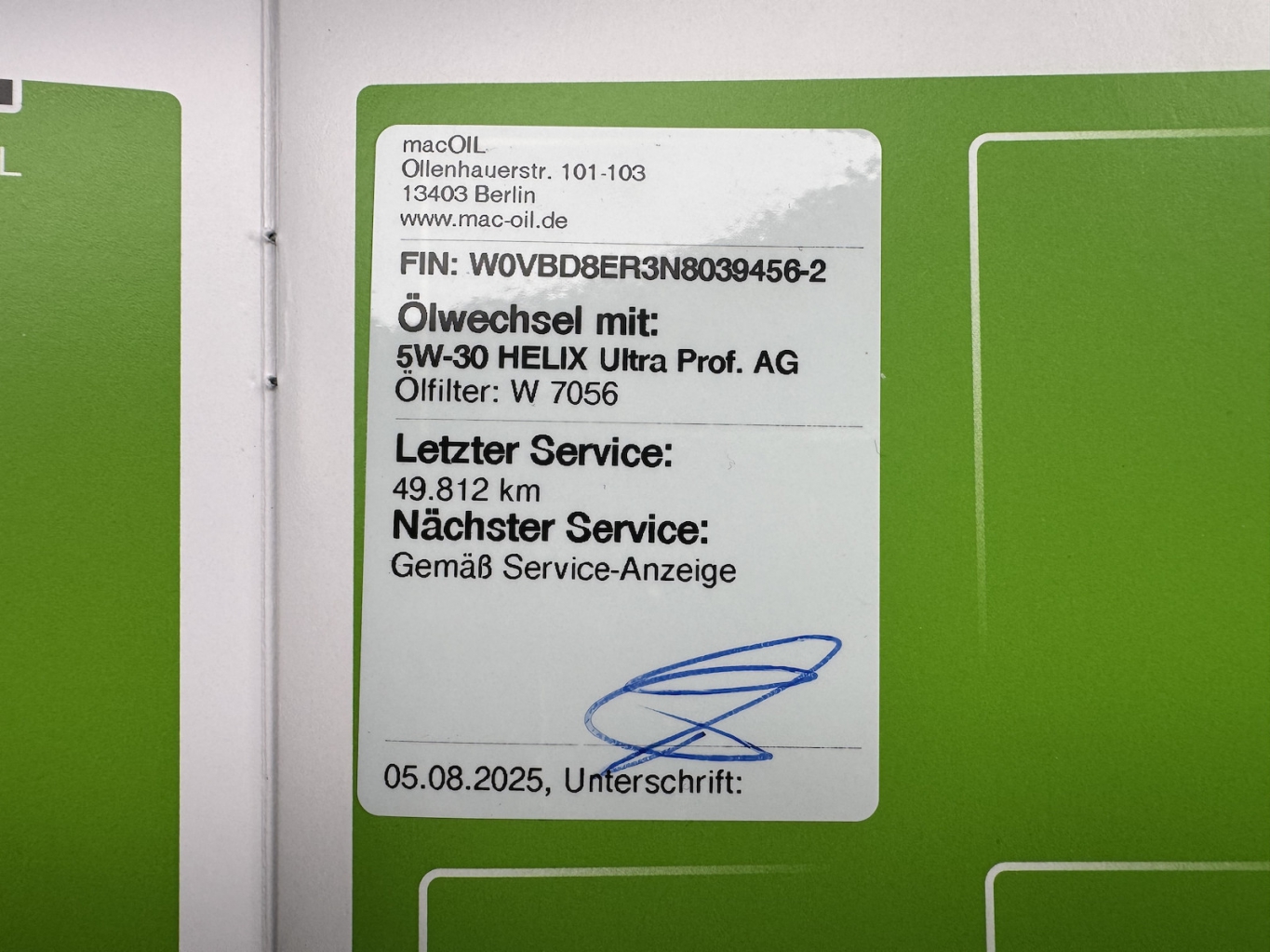 • LETZTER SERVICE AM 05.08.2025 BEI 49.812 KM GEMACHT,