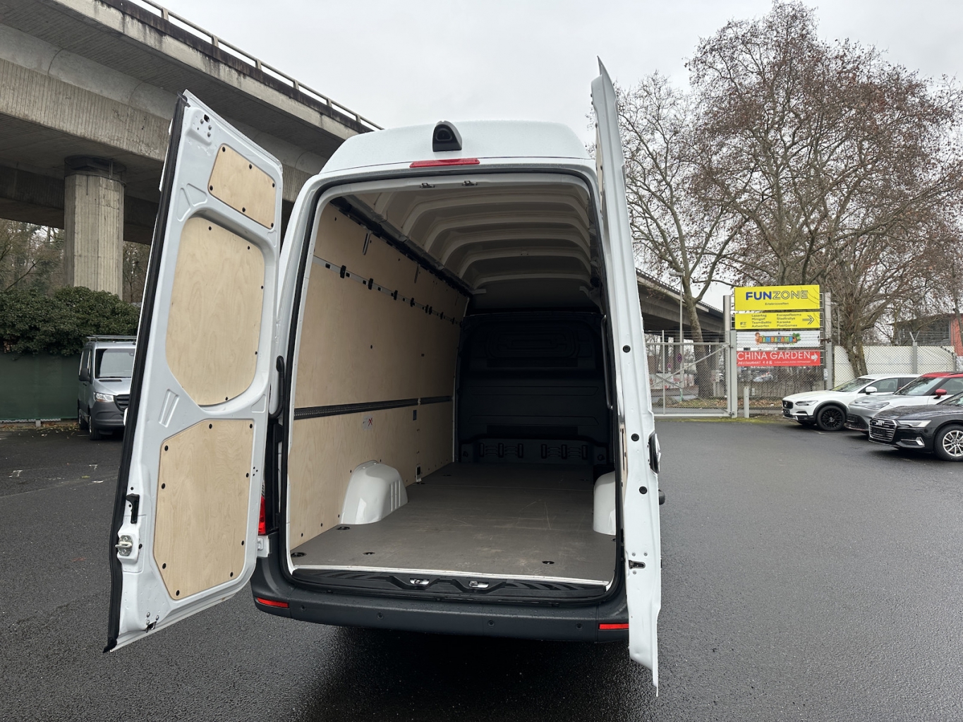 • Verkleidung im Lade-/FG-Raum: Holz hoch (bis Dach)