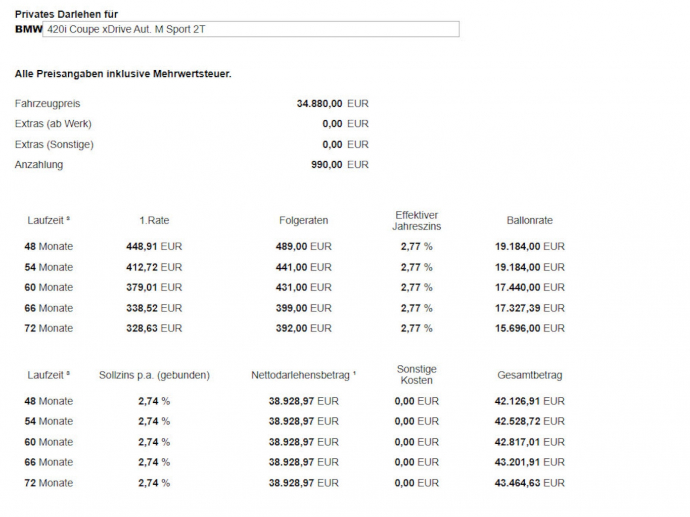 - Finanzierung 2, 77% Eff Zins. 399€ mtl. bei 990€ Anzahlung